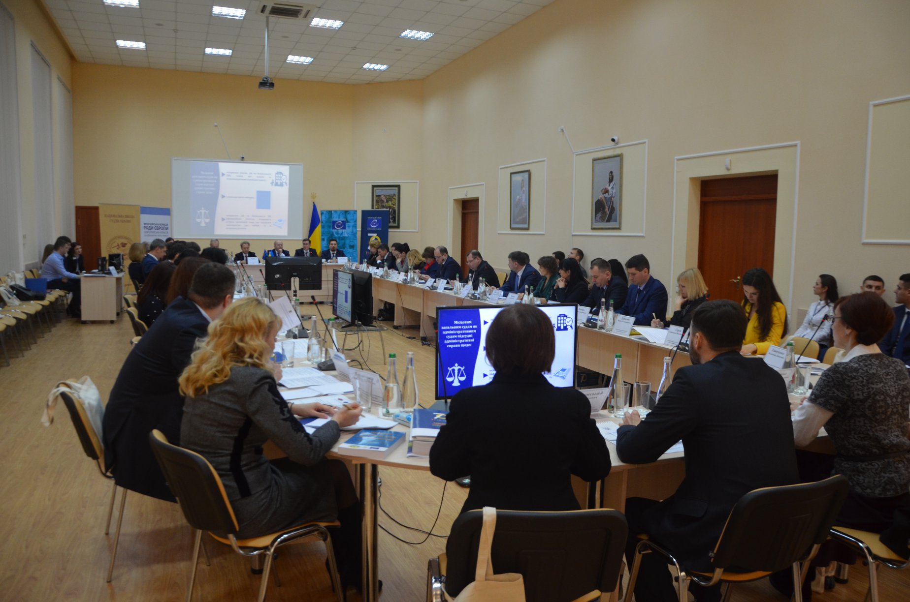 Відкривали цю фахову зустріч суддів адмінсудів ректор Національної школи суддів України Микола Оніщук, голова Касаційного адміністративного суду Михайло Смокович, очільник 7 апеляційного адміністративного суду Віталій Кузьмишин, секретар Великої палати ВС Всеволод Князєв та керівник проектів Офісу Ради Європи Сергій Ткаченко.