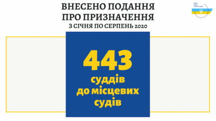Вища рада правосуддя упродовж перших восьми місяців 2020 року прийняла рішення про внесення Президентові України подання про призначення на посади 440 суддів до місцевих загальних судів, двох суддів – до місцевих господарських судів, одного судді – до місцевого адміністративного суду.